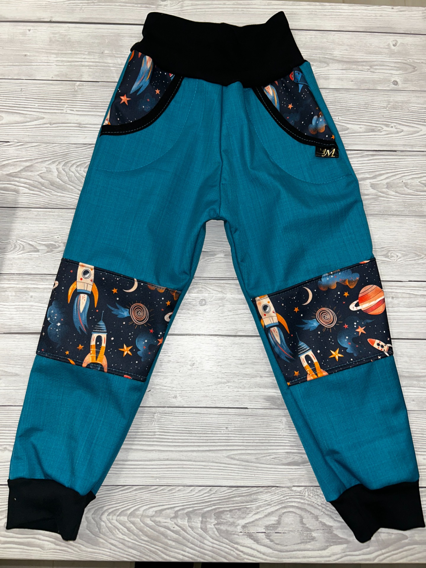 Softshellové kalhoty s beránkem - Tyrkys+vesmír