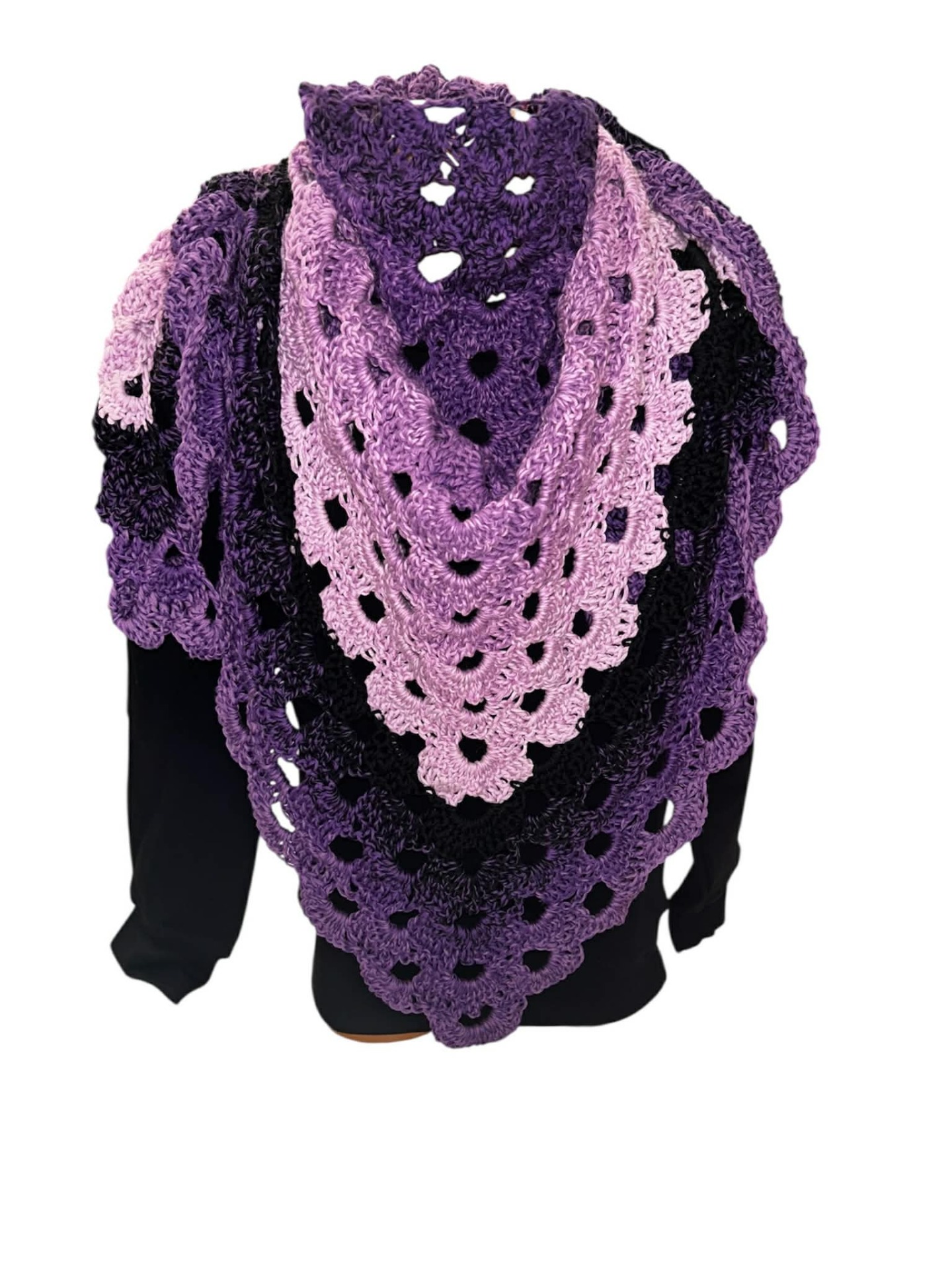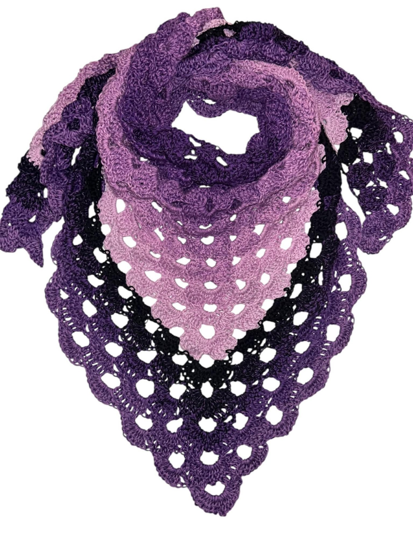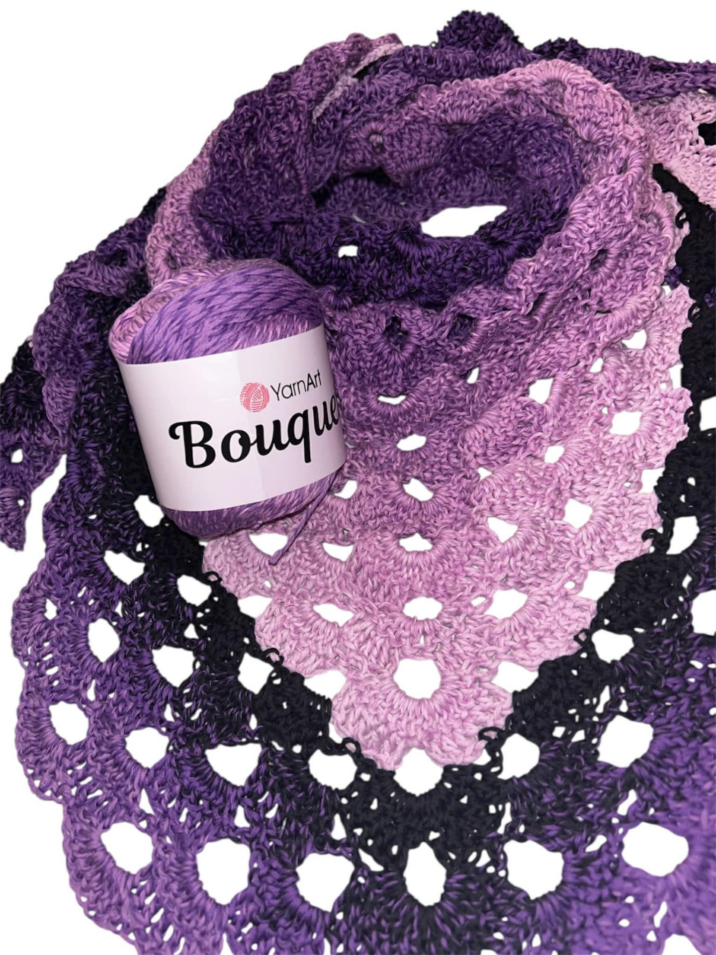 Tento šátek je uháčkován z exkluzivního trojnitkového klubíčka