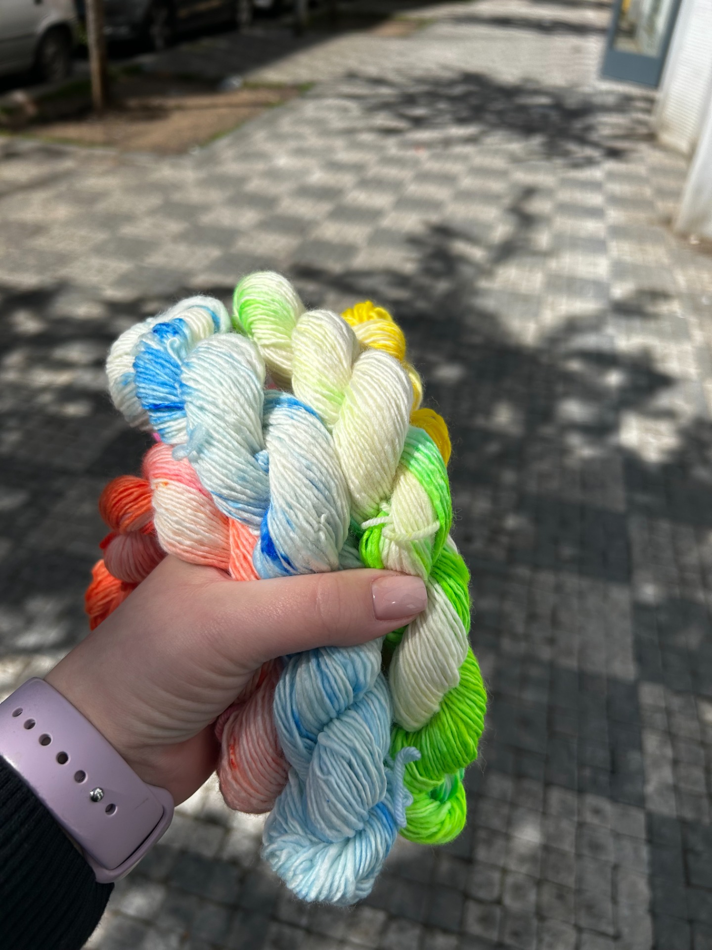 Složení: 100% merino, příze má úpravu superwash, lze ji tedy prát v pračce na jemný program do 40°C s pracím prostředkem na vlnu.