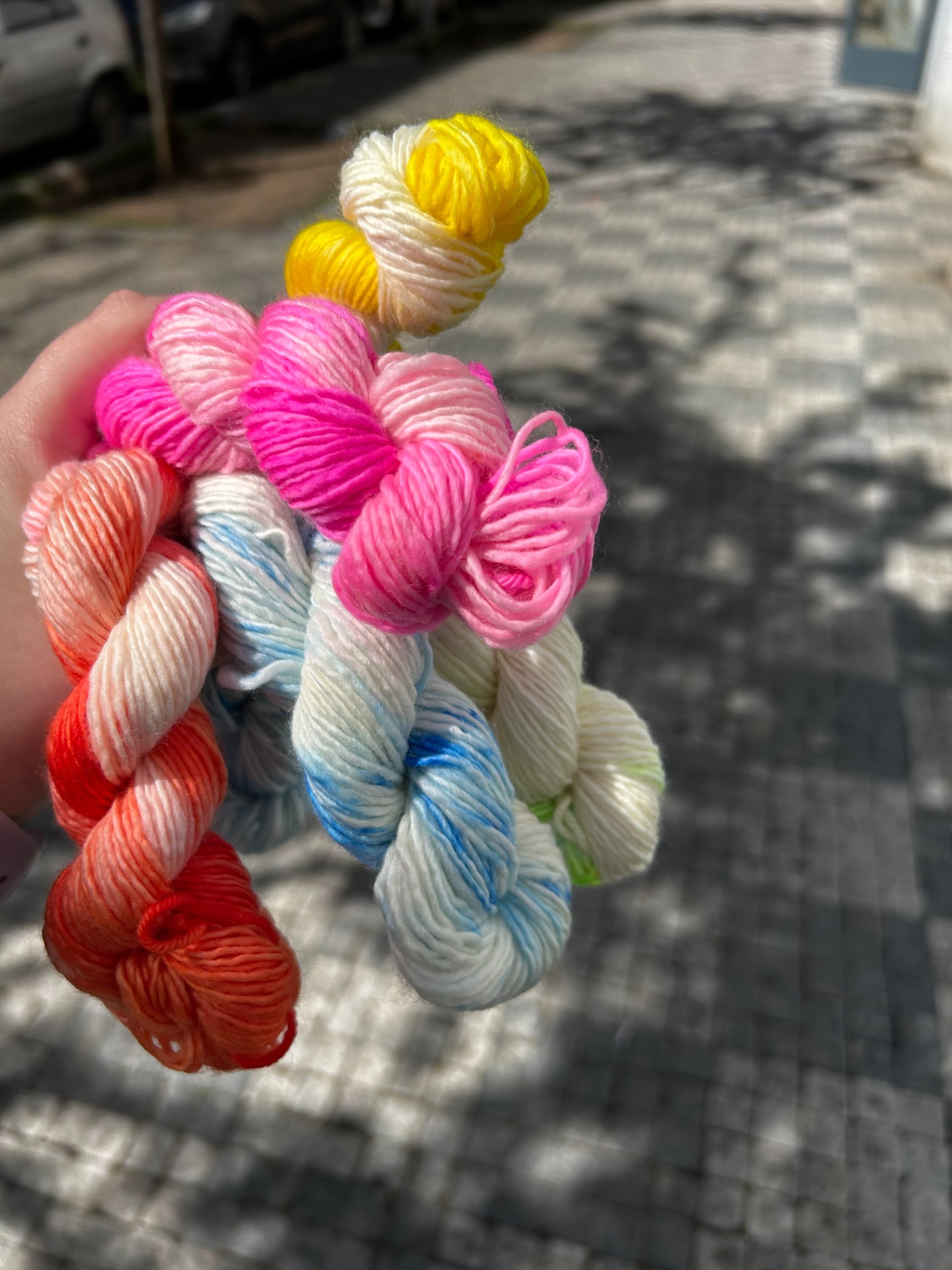 Mini přadena jsou skvělá na malé projekty, na barvení gradient, tedy postupné stínování nebo pro začátečníky na vyzkoušení :)Extra jemné 100% merino, pouze 19,5 mikronů, je pevné a příjemné na pokožku, má výborné vlastnosti při nošení, jeho přirozená pružnost umožňuje oděvům vrátit se do původního tvaru. Merino je vysoce prodyšné, odvádí vlhkost z těla, je antibakteriální, v létě chladí a v zimě hřeje.Mulesing free (ovečky nepodstupují bolestivý zákrok jako prevenci před infekcí)