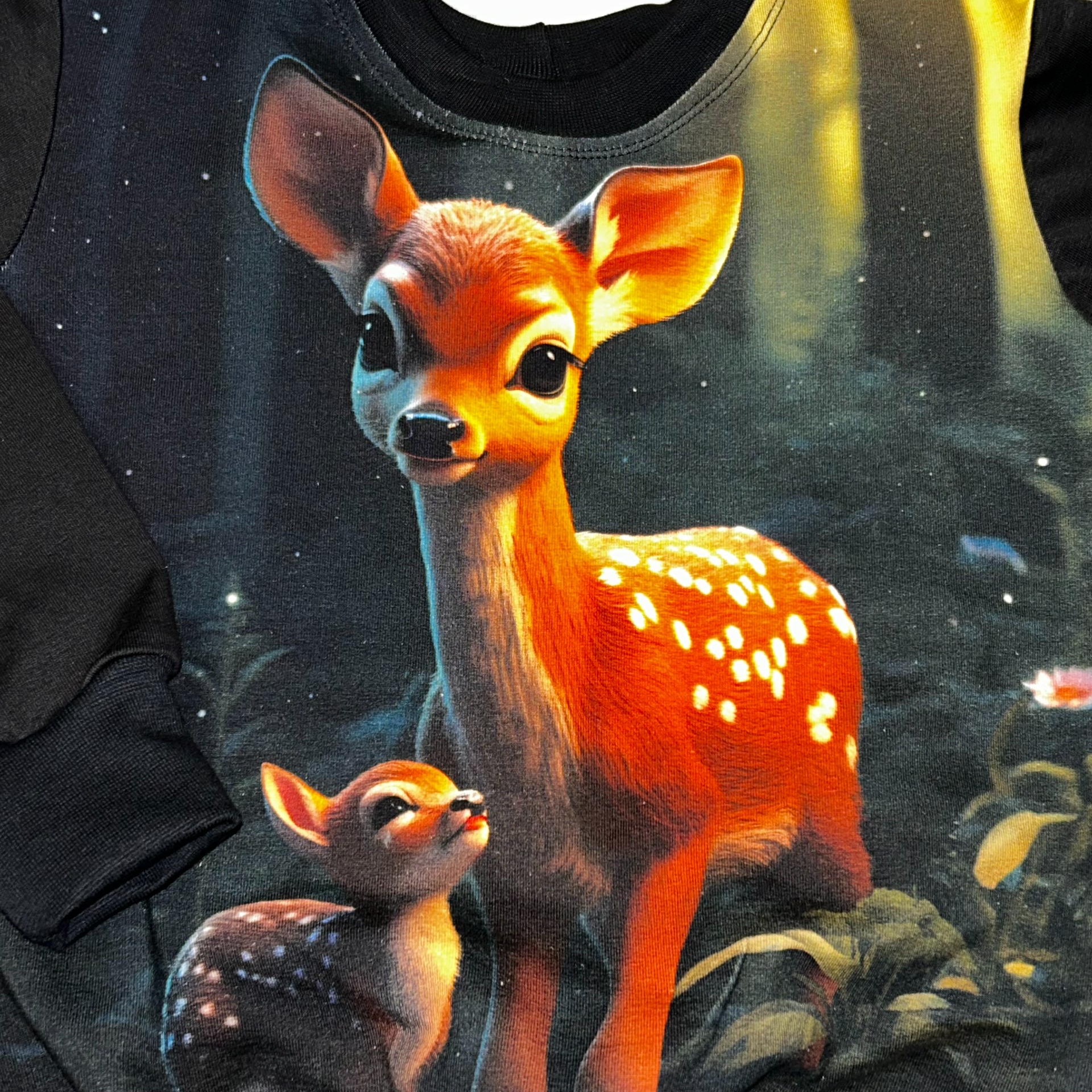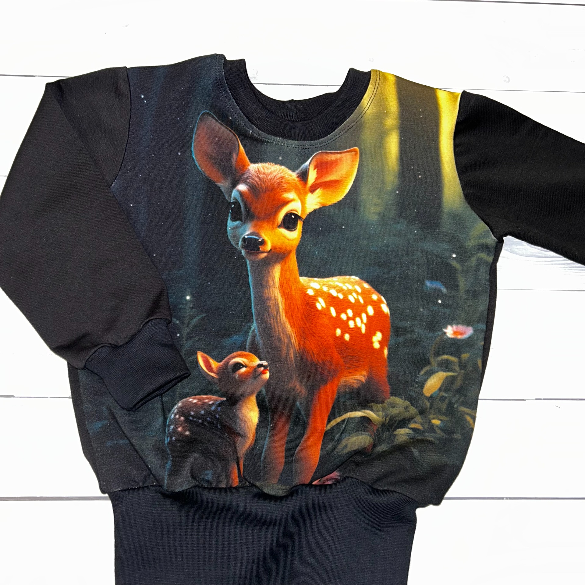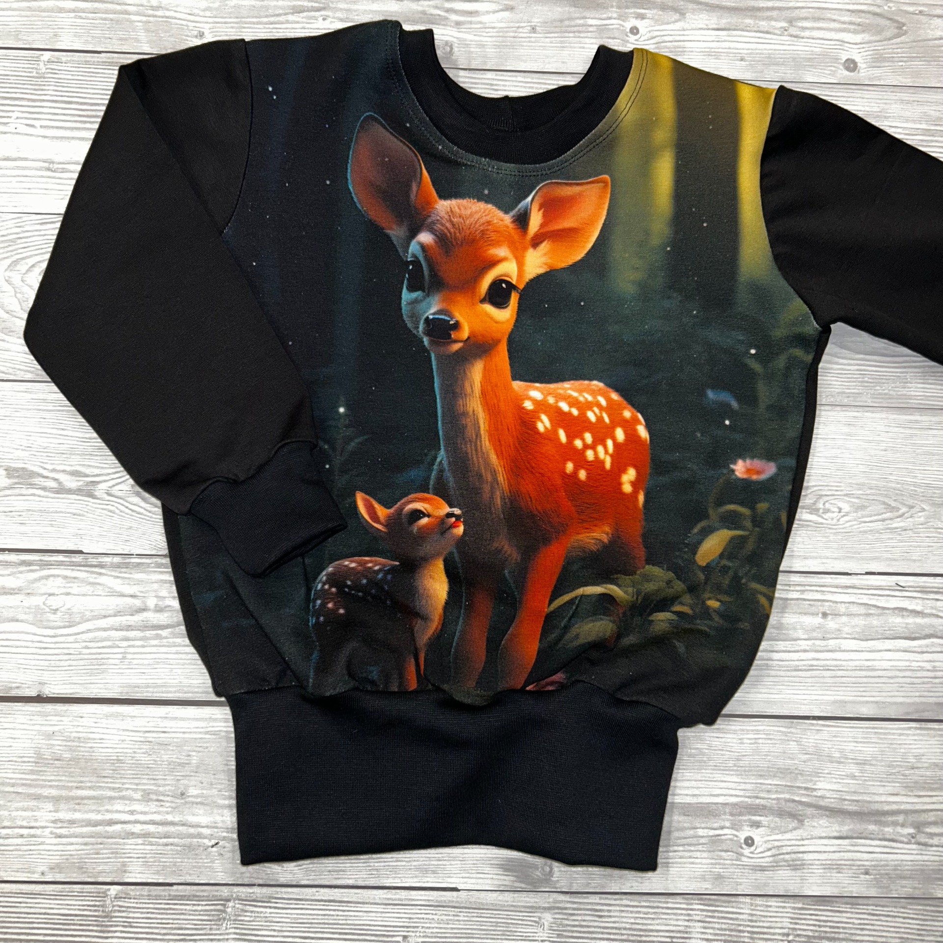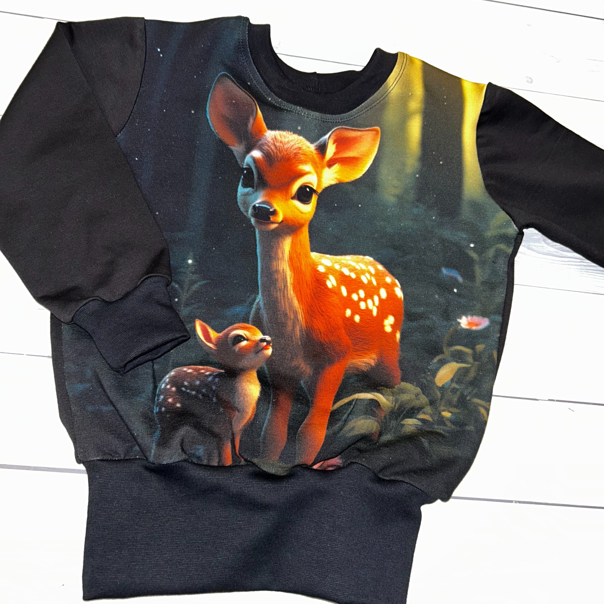 Designová mikina se zajímavým obrázkem , je vhodná pro malé i větší detičky. Je volnějšího střihu, s běžným rukávem, ušili jsme ji ze slabší pružné teplákoviny. V pase a rukávech - krásně pruží a drží mikinku na místě, zároveň drží teplo. Mikina je bez kapes.
