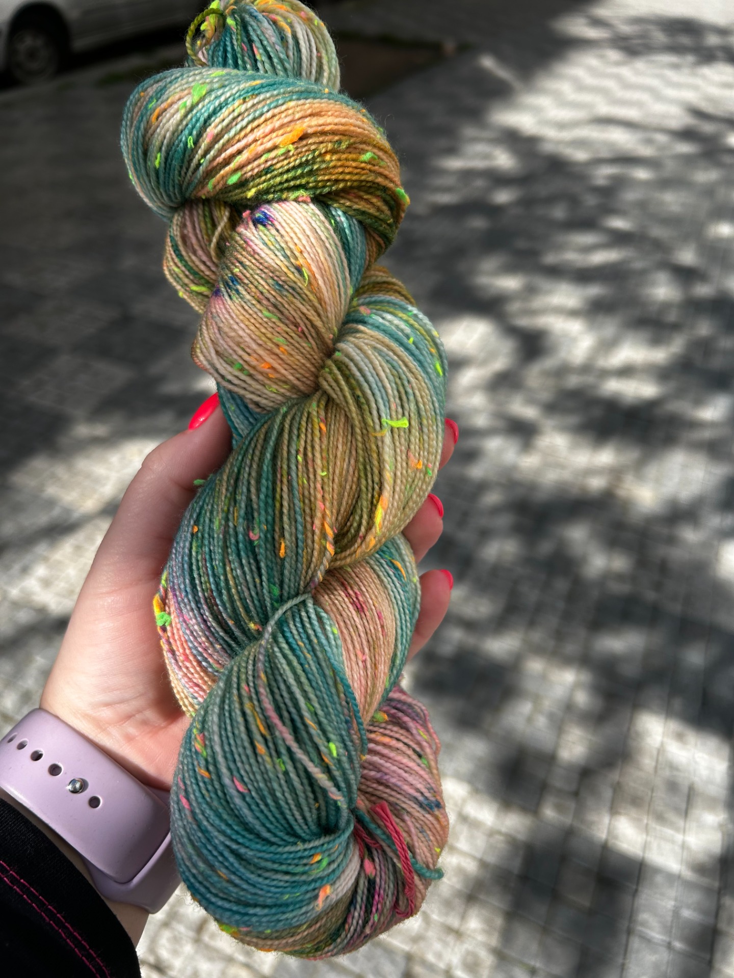 Složení: 85 % Superwash Merino, 15 % Neon Donegal Nep
